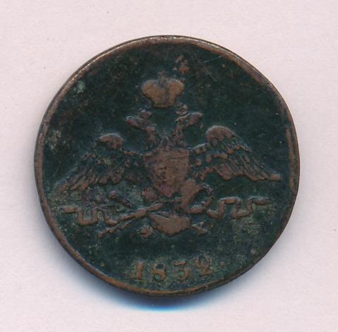 На новой серии медных монет оформление герба как на золотых (с 1817 года) и серебряных (с 1826 года), хотя еще в 1830 году было указано сделать для них орла как на платиновых. Таким образом, вышедшие в 1832 году в обращение новые медные монеты изначально имеют устаревшее оформление, а золотые и серебряные с этого же 1832 года — новое.