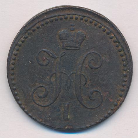 Лицевая сторона — вензель Николая I в бусовом ободке, оборотная — надпись «1 КОПЕЙКА СЕРЕБРОМ» и дата. Нормативный вес — 10,24 грамма, гурт гладкий.
