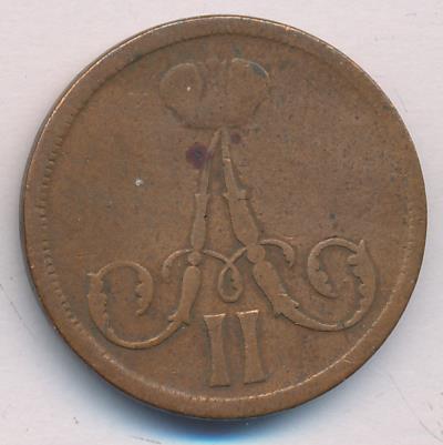 Лицевая сторона — вензель Николая I, оборотная — обозначение номинала (копейка) и дата. Нормативный вес — 5,12 грамма, гурт гладкий.