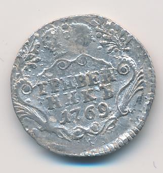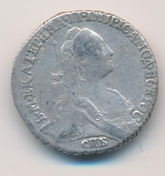 Лицевая сторона — портрет императрицы и надпись «Б М ЕКАТЕРИНА II IМП I САМОД ВСЕРОС», оборотная — обозначение номинала (гривенникъ) и дата. Проба — 750, нормативный вес — 2,37 грамма, гурт — шнур.