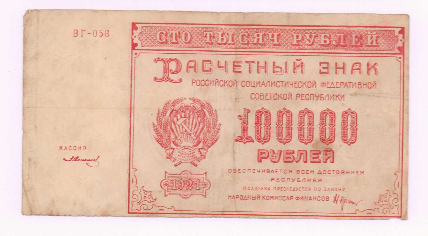 Расчетные знаки РСФСР образца 1921 г.