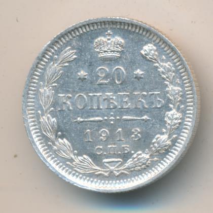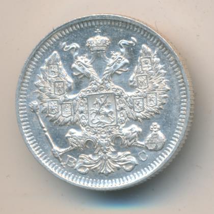 Лицевая сторона — гербовый орел, оборотная —обозначение номинала (20 копеекъ), окруженное венком из лавровой и дубовой ветвей и дата.