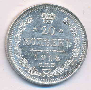 Лицевая сторона — гербовый орел, оборотная —обозначение номинала (20 копеекъ), окруженное венком из лавровой и дубовой ветвей и дата.