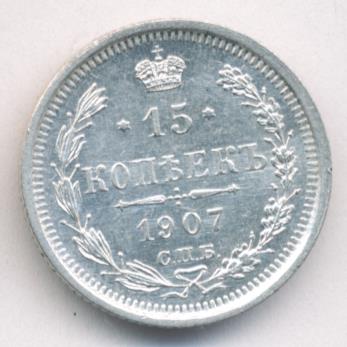 Лицевая сторона — гербовый орел, оборотная —обозначение номинала (15 копеекъ), окруженное венком из лавровой и дубовой ветвей и дата.