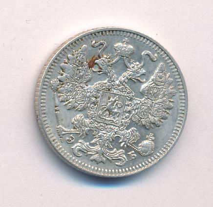 Лицевая сторона — гербовый орел, оборотная —обозначение номинала (15 копеекъ), окруженное венком из лавровой и дубовой ветвей и дата.