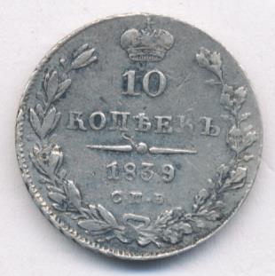 Лицевая сторона — новый гербовый орел с поднятыми крыльями, оборотная —обозначение номинала (10 копеекъ), окруженное венком из лавровой и дубовой ветвей и дата. Проба — 868, нормативный вес — 2,07 грамма.