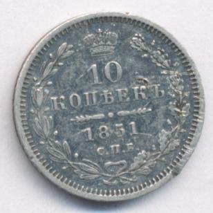 Лицевая сторона — новый гербовый орел с поднятыми крыльями, оборотная —обозначение номинала (10 копеекъ), окруженное венком из лавровой и дубовой ветвей и дата. Проба — 868, нормативный вес — 2,07 грамма.