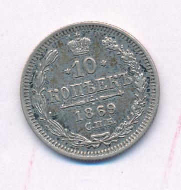 Лицевая сторона — гербовый орел, оборотная —обозначение номинала (10 копеекъ), окруженное венком из лавровой и дубовой ветвей и дата.
