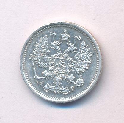Лицевая сторона — гербовый орел, оборотная —обозначение номинала (10 копеекъ), окруженное венком из лавровой и дубовой ветвей и дата.