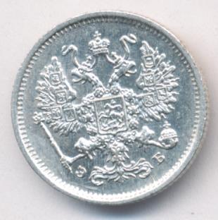 Лицевая сторона — гербовый орел, оборотная —обозначение номинала (10 копеекъ), окруженное венком из лавровой и дубовой ветвей и дата.