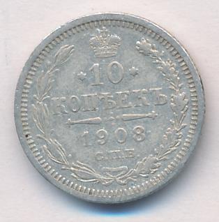Лицевая сторона — гербовый орел, оборотная —обозначение номинала (10 копеекъ), окруженное венком из лавровой и дубовой ветвей и дата.