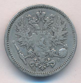 Лицевая сторона — российский двуглавый орел с гербом Великого княжества Финляндского на груди, оборотная — номинал и дата в венке из дубовых листьев. Проба — 750, нормативный вес — 2,55 грамма, гурт рубчатый.