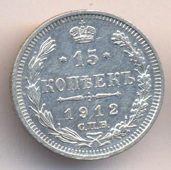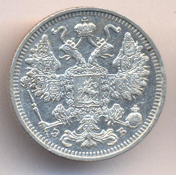 Лицевая сторона — гербовый орел, оборотная —обозначение номинала (15 копеекъ), окруженное венком из лавровой и дубовой ветвей и дата.