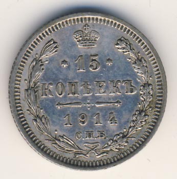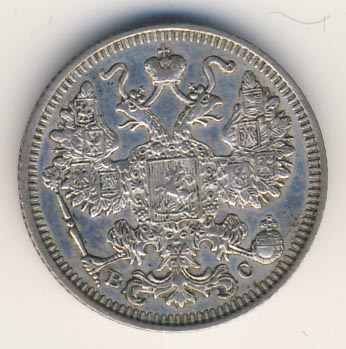 Лицевая сторона — гербовый орел, оборотная —обозначение номинала (15 копеекъ), окруженное венком из лавровой и дубовой ветвей и дата.