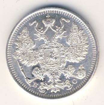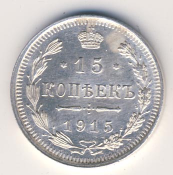 Лицевая сторона — гербовый орел, оборотная —обозначение номинала (15 копеекъ), окруженное венком из лавровой и дубовой ветвей и дата.