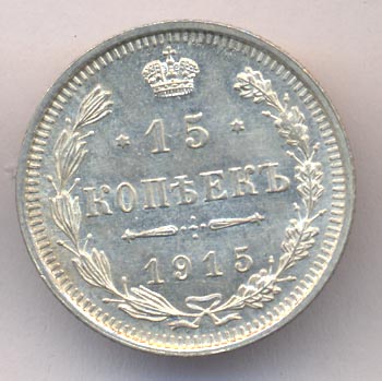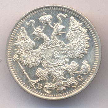 Лицевая сторона — гербовый орел, оборотная —обозначение номинала (15 копеекъ), окруженное венком из лавровой и дубовой ветвей и дата.