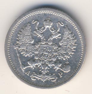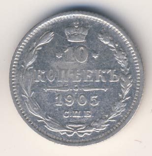 Лицевая сторона — гербовый орел, оборотная —обозначение номинала (10 копеекъ), окруженное венком из лавровой и дубовой ветвей и дата.