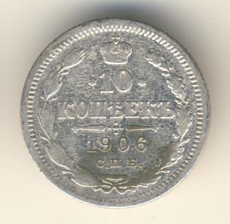 Лицевая сторона — гербовый орел, оборотная —обозначение номинала (10 копеекъ), окруженное венком из лавровой и дубовой ветвей и дата.
