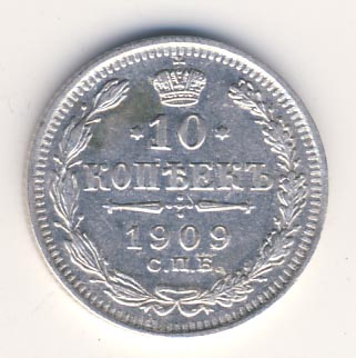 Лицевая сторона — гербовый орел, оборотная —обозначение номинала (10 копеекъ), окруженное венком из лавровой и дубовой ветвей и дата.