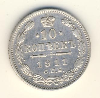 Лицевая сторона — гербовый орел, оборотная —обозначение номинала (10 копеекъ), окруженное венком из лавровой и дубовой ветвей и дата.