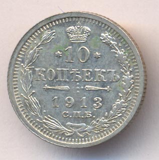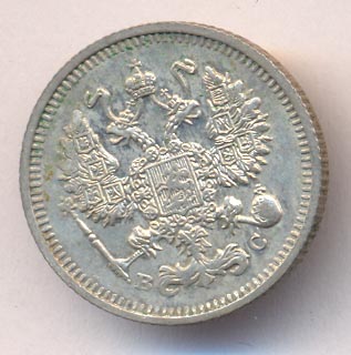 Лицевая сторона — гербовый орел, оборотная —обозначение номинала (10 копеекъ), окруженное венком из лавровой и дубовой ветвей и дата.