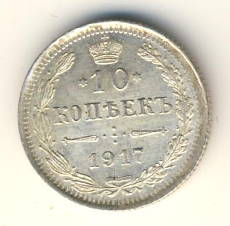 Лицевая сторона — гербовый орел, оборотная —обозначение номинала (10 копеекъ), окруженное венком из лавровой и дубовой ветвей и дата.