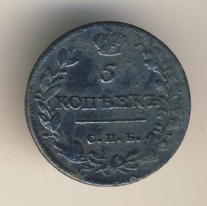 Лицевая сторона - двуглавый орел и дата, оборотная — обозначение номинала (5 копеекъ) в венке из лавровой и дубовой ветвей. Проба до 1813 года — 750, нормативный вес — 1,2 грамма; после 1813 года — проба 868, нормативный вес — 1,04 грамма.