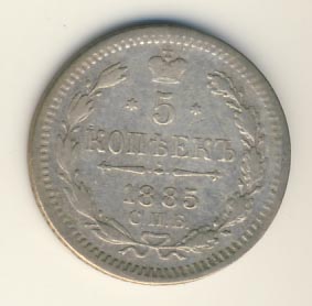 Лицевая сторона — гербовый орел, оборотная —обозначение номинала (5 копеекъ), окруженное венком из лавровой и дубовой ветвей и дата.