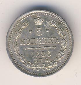 Лицевая сторона — гербовый орел, оборотная —обозначение номинала (5 копеекъ), окруженное венком из лавровой и дубовой ветвей и дата.