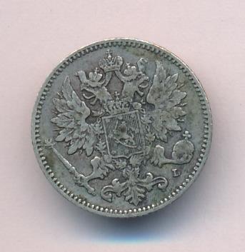 Лицевая сторона — российский двуглавый орел с гербом Великого княжества Финляндского на груди, оборотная — номинал и дата в венке из дубовых листьев. Проба — 750, нормативный вес — 1,27 грамма, гурт рубчатый.