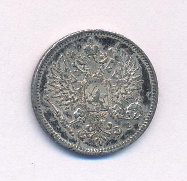 Лицевая сторона — российский двуглавый орел с гербом Великого княжества Финляндского на груди, оборотная — номинал и дата в венке из дубовых листьев. Проба — 750, нормативный вес — 1,27 грамма, гурт рубчатый.