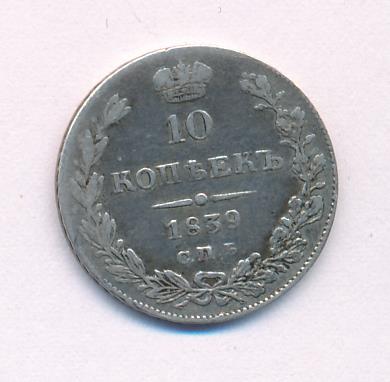 Лицевая сторона — новый гербовый орел с поднятыми крыльями, оборотная —обозначение номинала (10 копеекъ), окруженное венком из лавровой и дубовой ветвей и дата. Проба — 868, нормативный вес — 2,07 грамма.