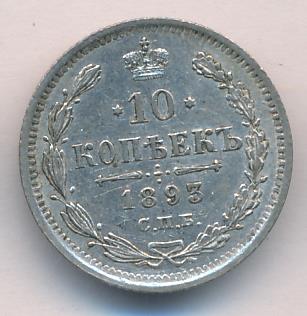Лицевая сторона — гербовый орел, оборотная —обозначение номинала (10 копеекъ), окруженное венком из лавровой и дубовой ветвей и дата.