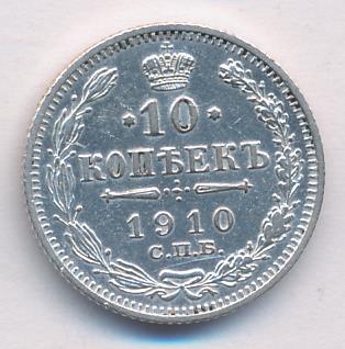 Лицевая сторона — гербовый орел, оборотная —обозначение номинала (10 копеекъ), окруженное венком из лавровой и дубовой ветвей и дата.