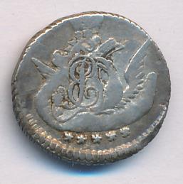 Внизу лицевой стороны помещены пять счетных точек для неграмотных, на оборотной — номинал и дата. Проба — 802, нормативный вес — 1,21 грамма.