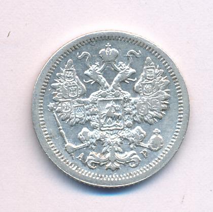 Лицевая сторона — гербовый орел, оборотная —обозначение номинала (15 копеекъ), окруженное венком из лавровой и дубовой ветвей и дата.