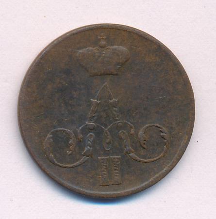 Лицевая сторона — вензель Николая I, оборотная — обозначение номинала (копейка) и дата. Нормативный вес — 5,12 грамма, гурт гладкий.