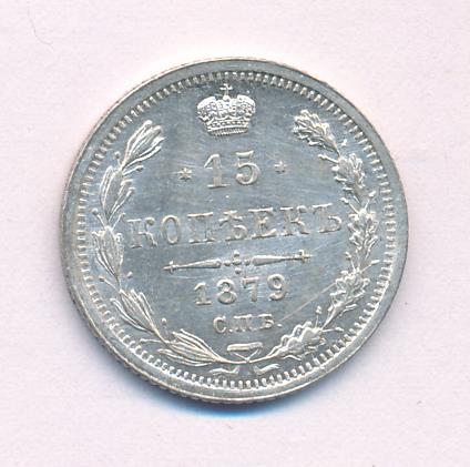 Лицевая сторона — гербовый орел, оборотная —обозначение номинала (15 копеекъ), окруженное венком из лавровой и дубовой ветвей и дата.