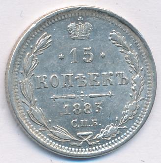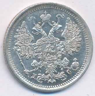 Лицевая сторона — гербовый орел, оборотная —обозначение номинала (15 копеекъ), окруженное венком из лавровой и дубовой ветвей и дата.