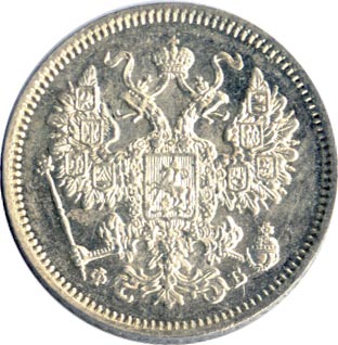 Лицевая сторона — гербовый орел, оборотная —обозначение номинала (15 копеекъ), окруженное венком из лавровой и дубовой ветвей и дата.