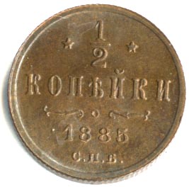 Лицевая сторона — вензель Александра II в венке из лавровой и дубовой ветвей; оборотная — обозначение номинала (1/2 копейки) и дата. Нормативный вес — 1,64 грамма, гурт рубчатый.
