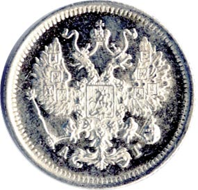 Лицевая сторона — гербовый орел, оборотная —обозначение номинала (10 копеекъ), окруженное венком из лавровой и дубовой ветвей и дата.