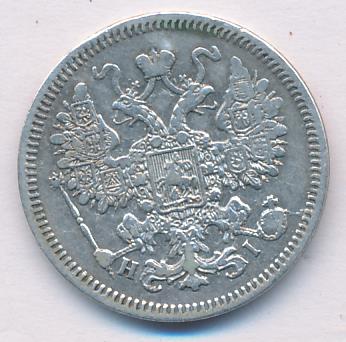 Лицевая сторона — гербовый орел, оборотная —обозначение номинала (15 копеекъ), окруженное венком из лавровой и дубовой ветвей и дата.