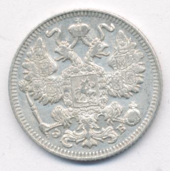 Лицевая сторона — гербовый орел, оборотная —обозначение номинала (15 копеекъ), окруженное венком из лавровой и дубовой ветвей и дата.
