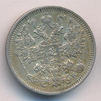 Лицевая сторона — гербовый орел, оборотная —обозначение номинала (15 копеекъ), окруженное венком из лавровой и дубовой ветвей и дата.