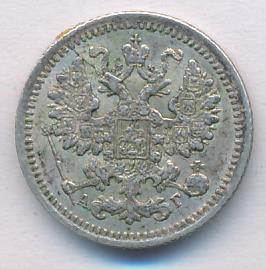 Лицевая сторона — гербовый орел, оборотная —обозначение номинала (5 копеекъ), окруженное венком из лавровой и дубовой ветвей и дата.