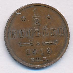 Лицевая сторона — вензель Александра II в венке из лавровой и дубовой ветвей; оборотная — обозначение номинала (1/2 копейки) и дата. Нормативный вес — 1,64 грамма, гурт рубчатый.