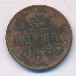 Лицевая сторона — вензель Николая I, оборотная — обозначение номинала (полушка) и дата. Нормативный вес — 1,28 грамма, гурт гладкий.