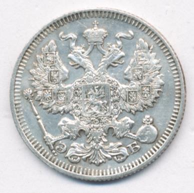 Лицевая сторона — гербовый орел, оборотная —обозначение номинала (20 копеекъ), окруженное венком из лавровой и дубовой ветвей и дата.