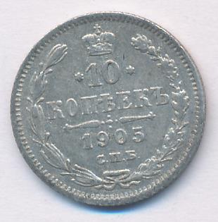 Лицевая сторона — гербовый орел, оборотная —обозначение номинала (10 копеекъ), окруженное венком из лавровой и дубовой ветвей и дата.